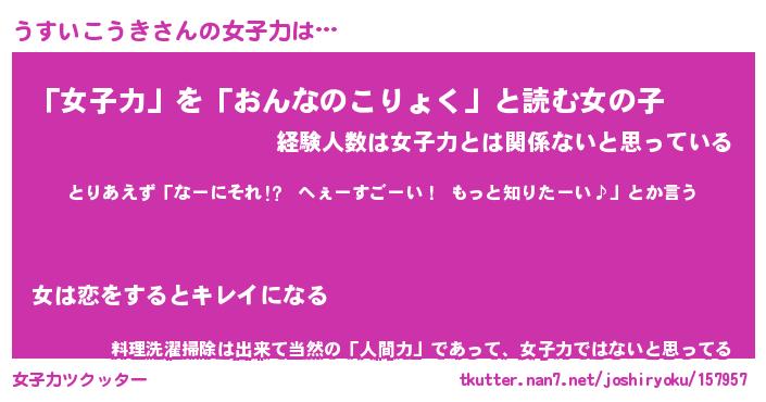| 女子向けラノベタイトル風あだ名 | 『うすいこうき姫と円卓の騎士』 |
