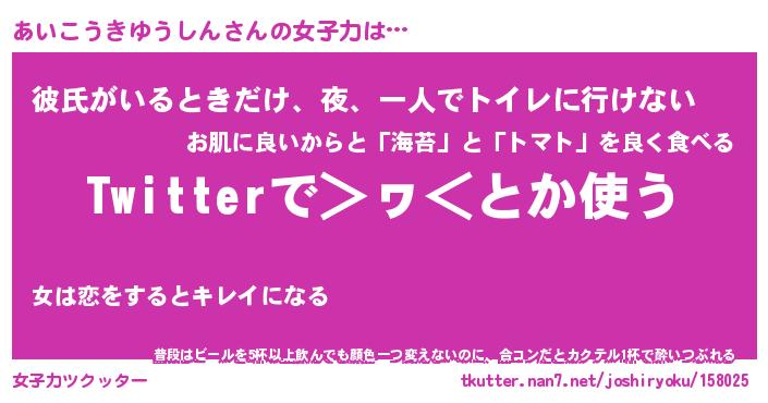 | 男性向けラノベタイトル風あだ名 | 『あいこうきゆうしんの憂鬱』 |
