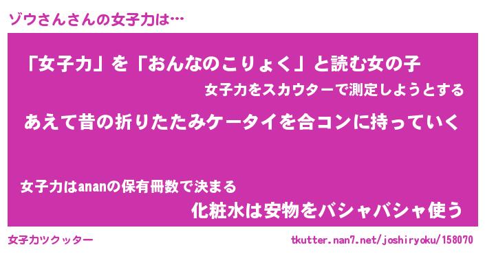 | 意味不明あだ名 | 『ペロリンゾウさん』『永久保存ゾウさん』 |