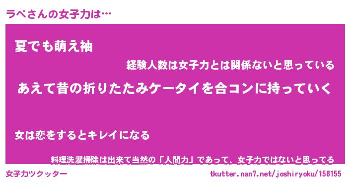 | ファンタジー風あだ名 | 『ラペフェル』『エターナルラペー』 |