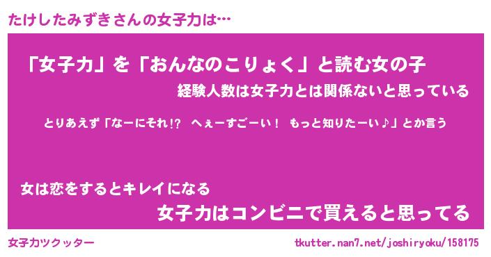| 伝説のあだ名 | 『封印されしスナイパーたけしたみずき』 |
