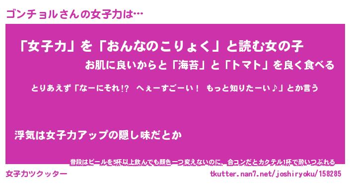 | ヘコむあだ名 | 『ゴンにー』『酢こんぶ』『ゴン太郎』 |