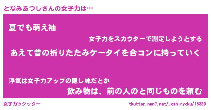 | 胡散臭い通販商品みたいなあだ名 | 『必ず成功する霊験あらたかなお札…その名も「となみあつし」』 |