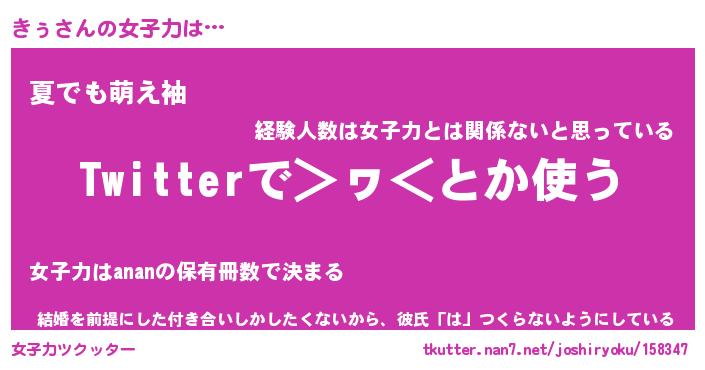 | ヘコむあだ名 | 『きぅふぇ~』『なまこ酢』 |