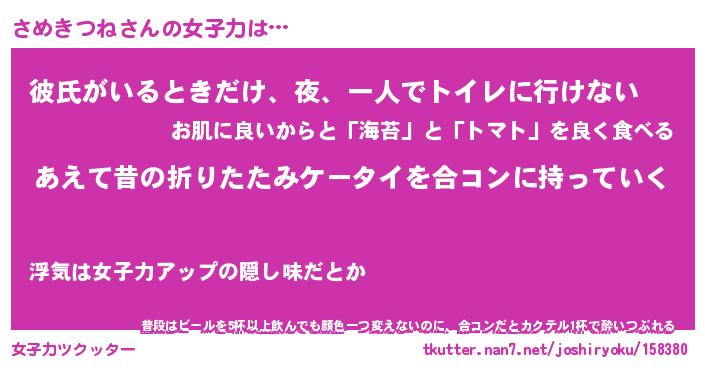 | 恥ずかしいあだ名 | 『プリティーさめきつね』『さめっちょ』 |
