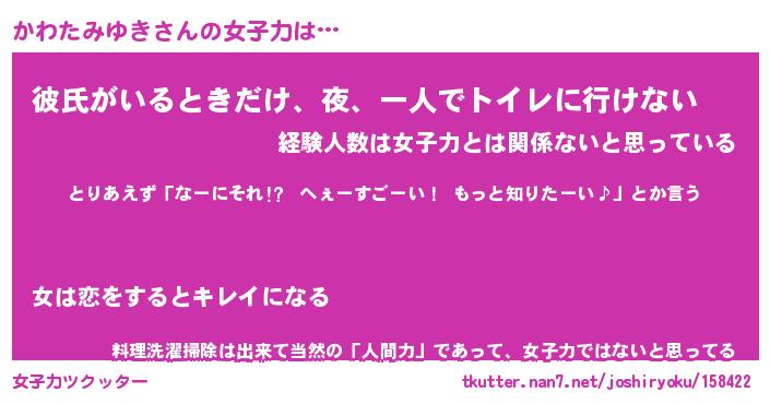 | 恥ずかしいあだ名 | 『プリティーかわたみゆき』『かわっちょ』 |
