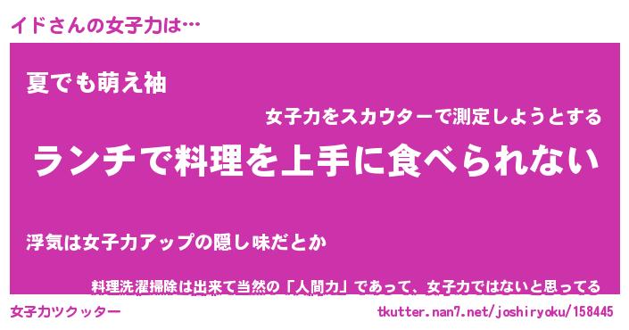 | ヘコむあだ名 | 『イドふぇ~』『なまこ酢』『イドを』 |