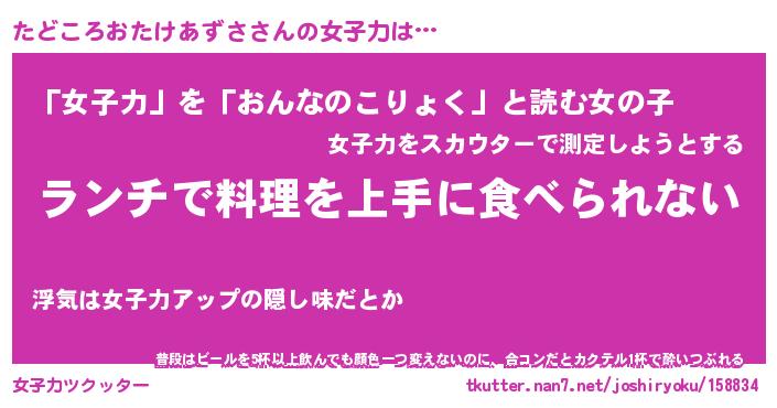 | 胡散臭い通販商品みたいなあだ名 | 『億万長者になれる水晶球…その名も「たどころおたけあずさ」』 |