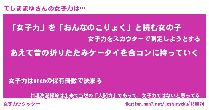 | ヘコむあだ名 | 『てしっふぃ~』『なまこ酢』 |