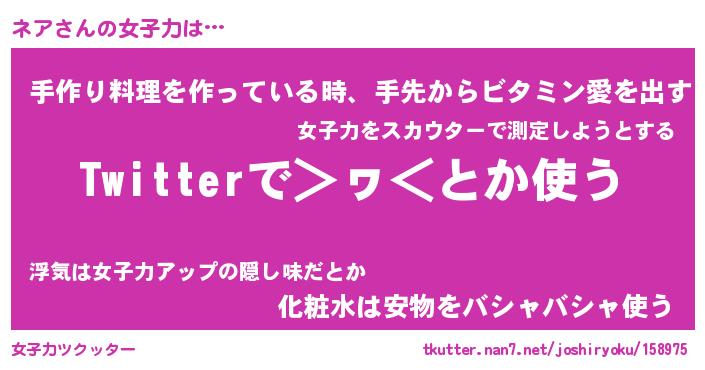 | ヘコむあだ名 | 『ネアにー』『つくし』『ネアっ子』 |