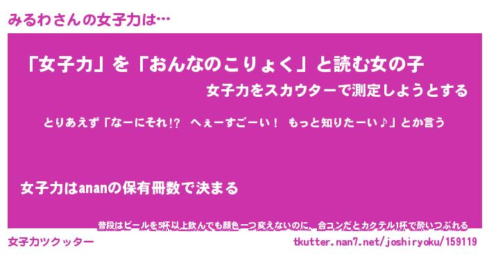| ファンタジー風あだ名 | 『ミルフェル』『エターナルミルワー』 |