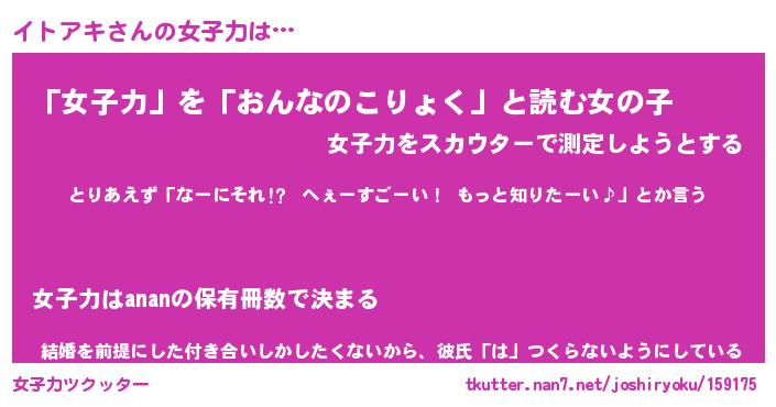 | ファンタジー風あだ名 | 『イトフェル』『エターナルイトアキー』 |