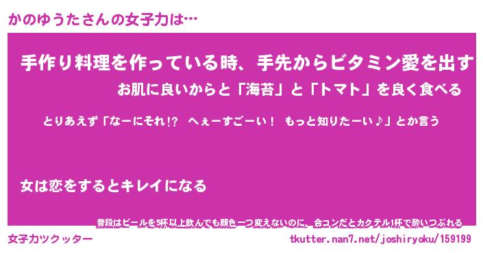 | 恥ずかしいあだ名 | 『プリティーかのゆうた』『かのっちょ』 |