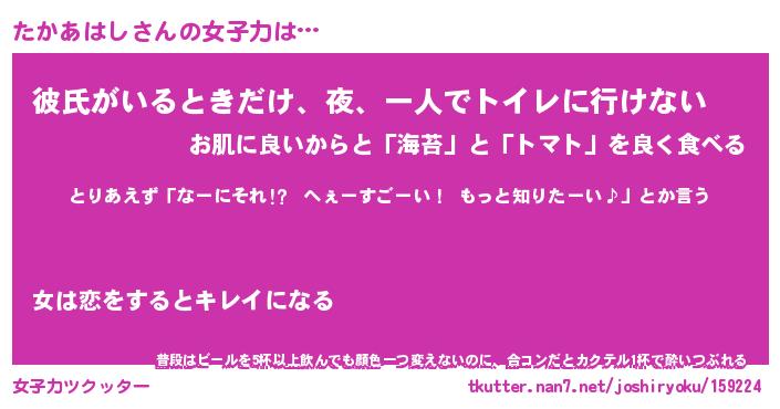| ヘコむあだ名 | 『たかにー』『つくし』『たかっちょ』 |