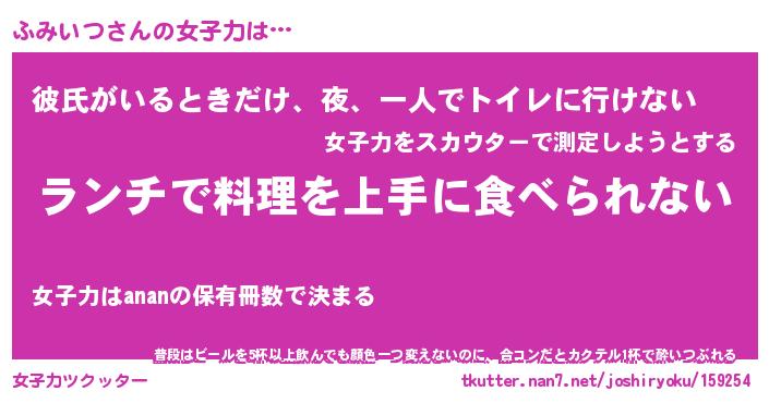 | ヘコむあだ名 | 『ふみにゅー』『牛乳』『ふみっちょ』 |