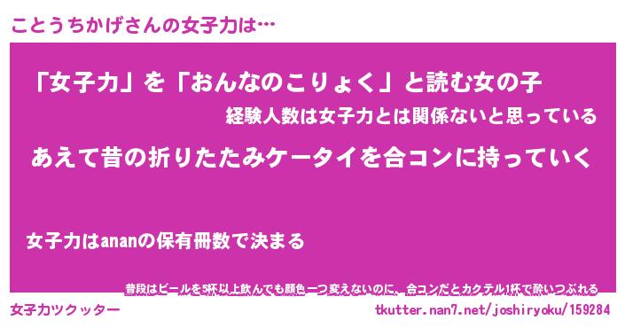 | ヘコむあだ名 | 『ことふぇ~』『酢こんぶ』『ことを』 |