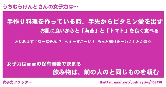 | 恥ずかしいあだ名 | 『プリティーうちむらけんと』『うちちん』 |
