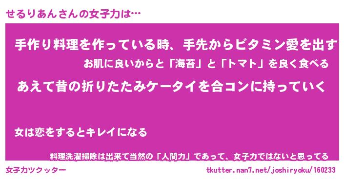 | ヘコむあだ名 | 『せるっふぃ~』『つくし』『せるを』 |