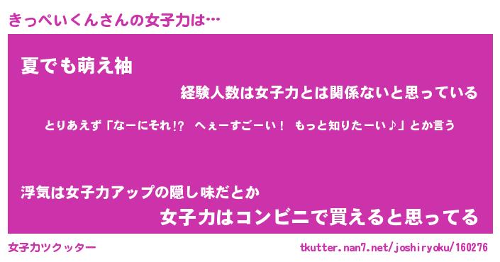 | ヘコむあだ名 | 『きっもー』『酢こんぶ』『きっっぺ』 |