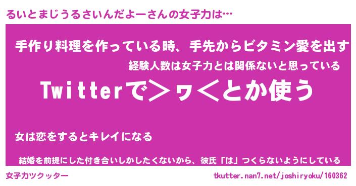 | ヘコむあだ名 | 『るいにー』『牛乳』『るいぷりん』 |