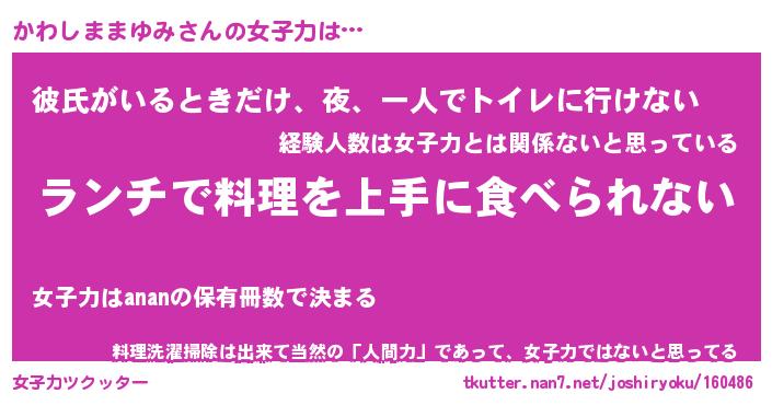 | 恥ずかしいあだ名 | 『プリティーかわしままゆみ』『かわちん』 |