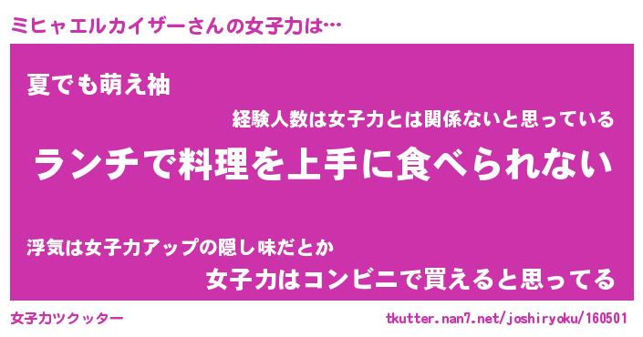 | ヘコむあだ名 | 『ミヒにゅー』『なまこ酢』『ミヒを』 |