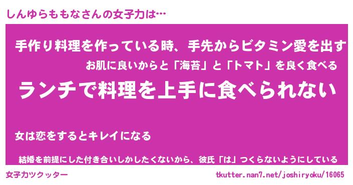 | 恥ずかしいあだ名 | 『プリティーしんゆらももな』『しんちん』 |