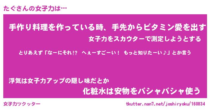 | 恥ずかしいあだ名 | 『プリティーたぐ』『たぐっちょ』 |