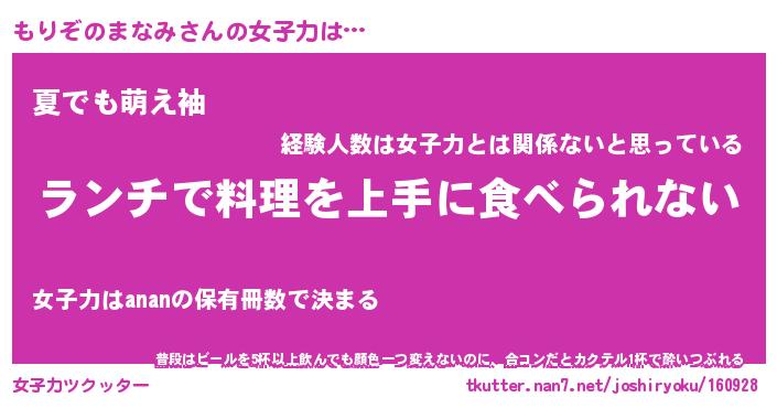 | 恥ずかしいあだ名 | 『プリティーもりぞのまなみ』『もりちん』 |