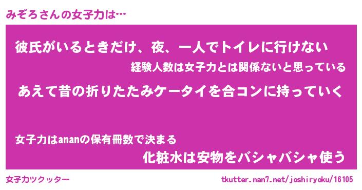 | ヘコむあだ名 | 『みぞにゅー』『豆乳』『みぞっ子』 |