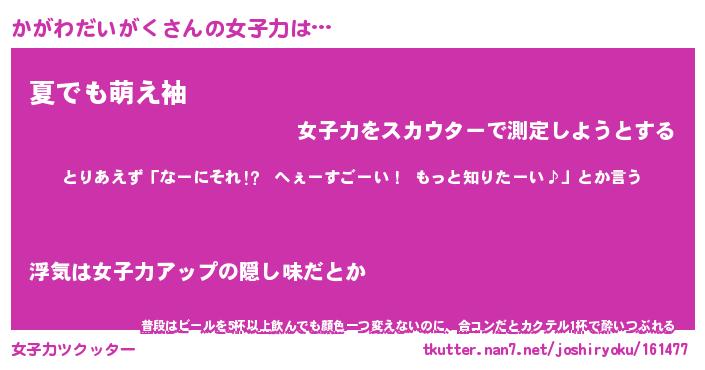 | ポケモン風あだ名 | 『カガチュウ』『カガワダネ』 |