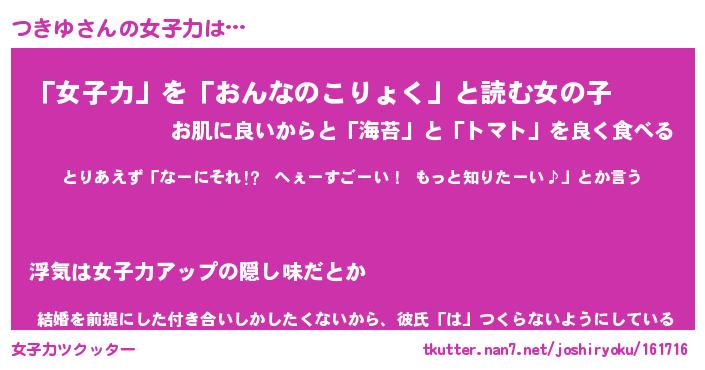 | ファンタジー風あだ名 | 『ツキフェル』『エターナルツキユー』 |