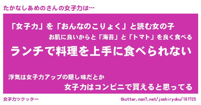 | 恥ずかしいあだ名 | 『プリティーたかなしあめの』『たかちん』 |