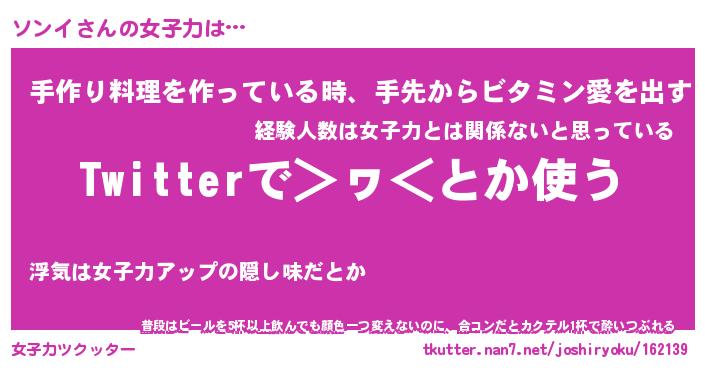 | ヘコむあだ名 | 『ソンにー』『豆乳』『ソンを』 |