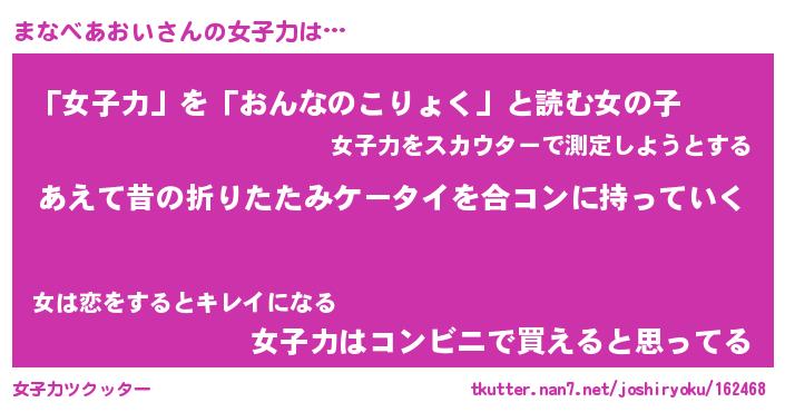 | 胡散臭い通販商品みたいなあだ名 | 『必ず成功する水晶球…その名も「まなべあおい」』 |