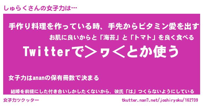 | ヘコむあだ名 | 『しゅにゅー』『つくし』『しゅっ子』 |