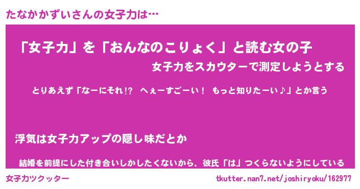 | ヒーロー風カッコイイあだ名 | 『スーパータナカカズイ』『魔戒騎士タナ』 |