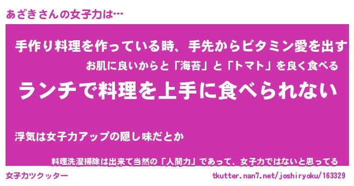 | ヘコむあだ名 | 『あざふぇ~』『つくし』『あざを』 |