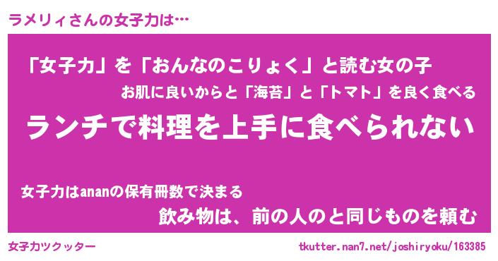 | ファンタジー風あだ名 | 『ラメフェル』『エターナルラメリィー』 |