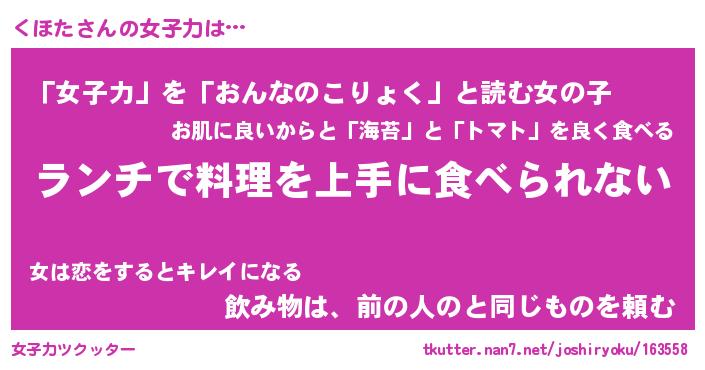 | ヘコむあだ名 | 『くほっふぃ~』『つくし』『くほお』 |