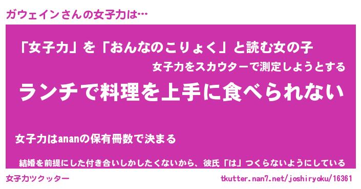 | 恥ずかしいあだ名 | 『プリティーガウェイン』『ガウっちょ』 |
