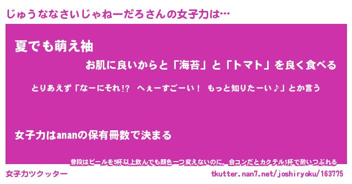 | 料理風あだ名 | 『節約★じゅうななさいじゃねーだろと油揚げの玉子丼』 |