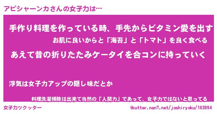 | ヘコむあだ名 | 『アピっふぃ~』『なまこ酢』 |