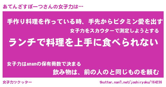 | ヘコむあだ名 | 『あてっふぃ~』『つくし』 |