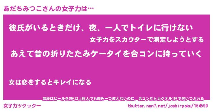 | 女子向けラノベタイトル風あだ名 | 『(仮)あだちみつこのやんごとなき事情』 |