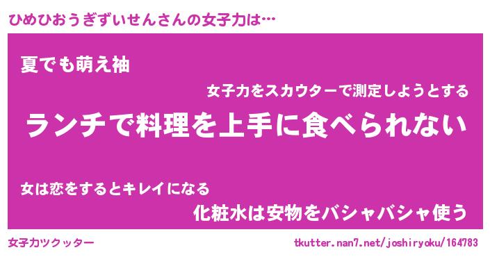 | ヘコむあだ名 | 『ひめっふぃ~』『なまこ酢』 |