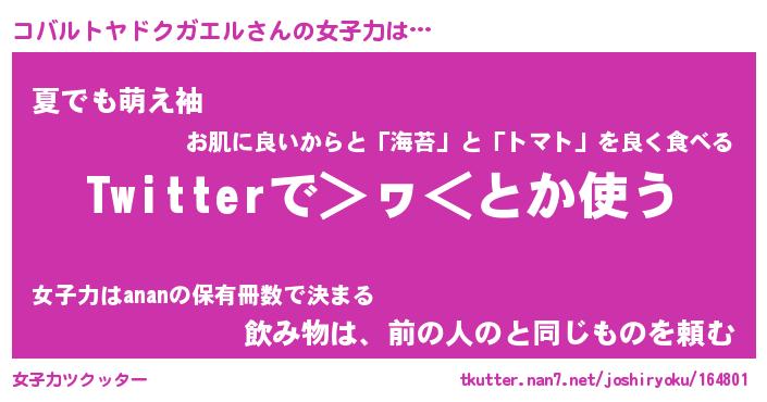 | 胡散臭い通販商品みたいなあだ名 | 『必ず成功するブレスレット…その名も「コバルトヤドクガエル」』 |