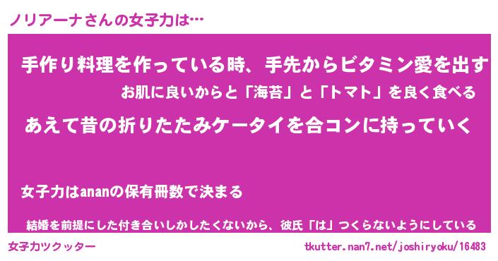 | 恥ずかしいあだ名 | 『プリティーノリアーナ』『ノリっちょ』 |
