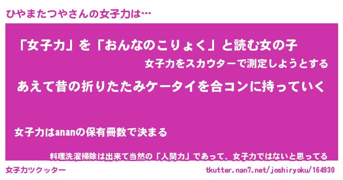 | 女子向けラノベタイトル風あだ名 | 『(仮)ひやまたつやのやんごとなき事情』 |