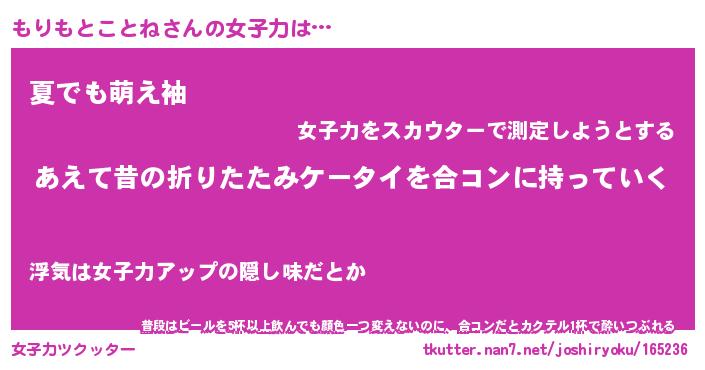 | ヘコむあだ名 | 『もりっふぃ~』『なまこ酢』 |
